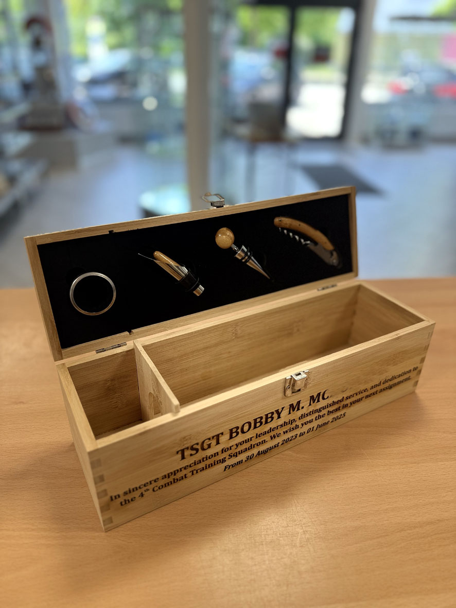 Wine Box Winebox USAFE AFAFRICA WARFARE CENTER by Trophy Center KL  Mr. & Mrs. Kulbick  | Trophy Shop | Engraving Shop | ONLY in Kaiserslautern-Einsiedlerhof underneath Hacienda Mexican Restaurant | 2 MILES FROM RAMSTEIN AIR BASE | Going Away Gifts | PCS Awards | Engraved Etched Custom Made Coin Challenge Coins Stamps Guidons Awards Plaques USAREUR-AF | USAFE  AFAFRICA | EUCOM | AFRICOM | MARFOREUR | GPC Card Accepted | 889 Document available | WE ARE NOT AFFILIATED WITH ANY STORES ON BASE OR SOMEWHERE ELSE |  ONLY in K-TOWN  | We Are Awesome | E-Mail: info@trophy-center.de